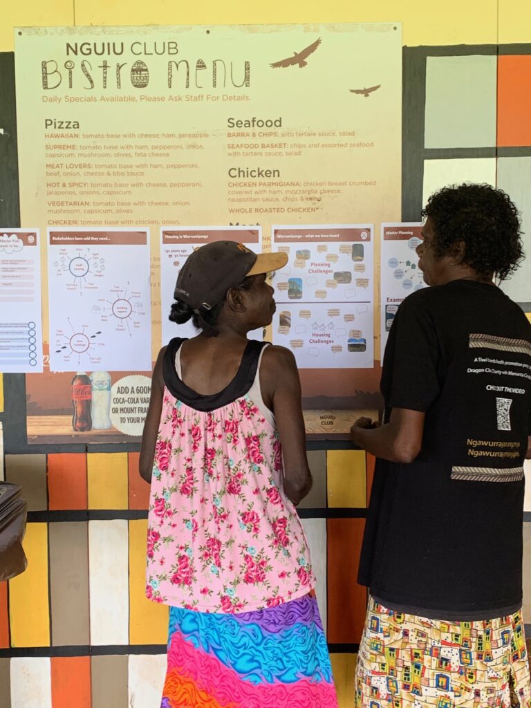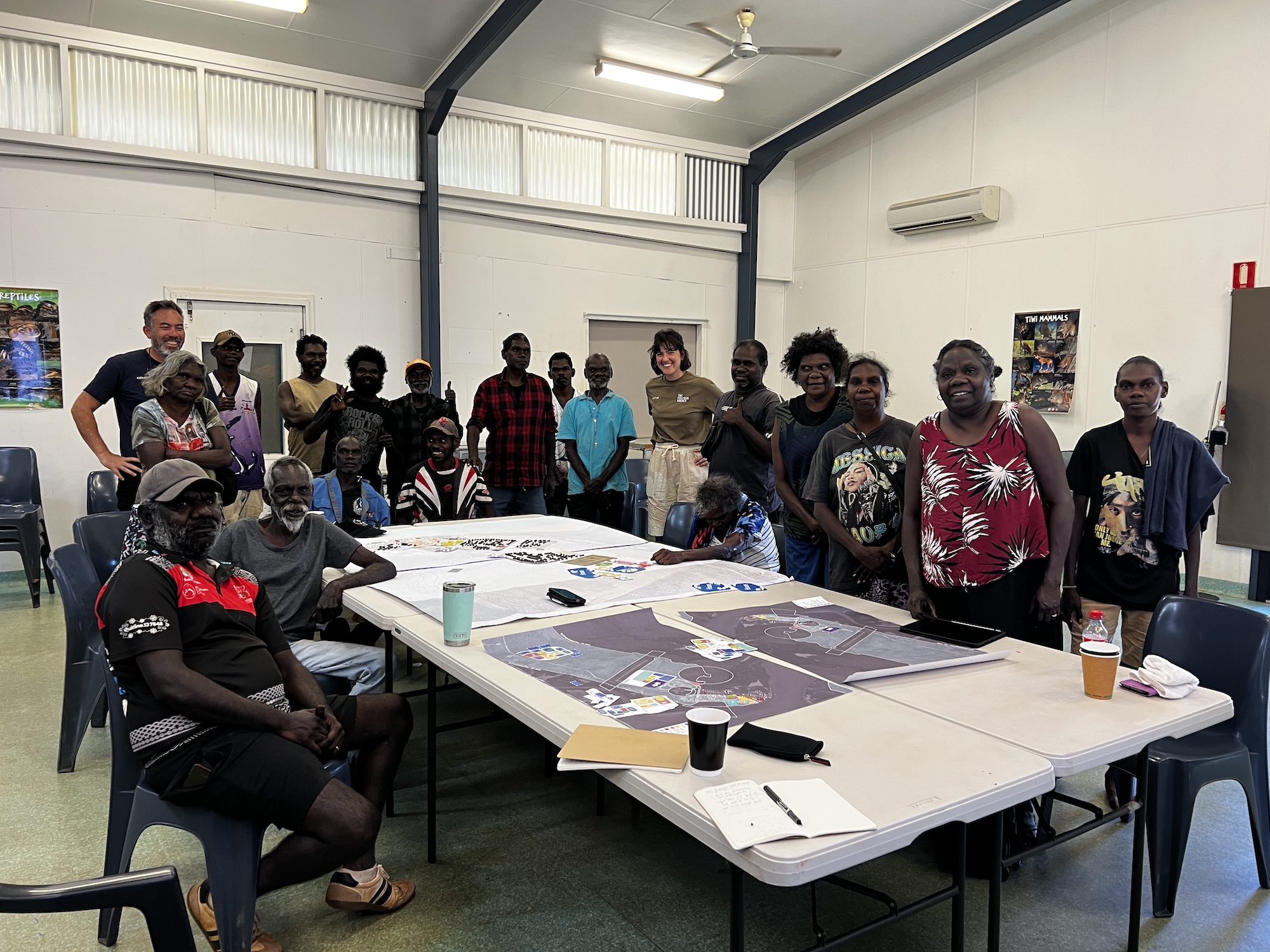 Mantiyupwi directors led this project from start to finish. We worked with them closely and visited regularly, taking the time to understand the people, environment, and organisations woven into the fabric of daily life, including the school, Red Cross, police, community shop, social club, medical services, and the extraordinary arts centres. We met with community members of all ages, including one remarkable gathering that brought together more than 100 people from the Mantiyupwi clan to discuss the future of their community. Time and again, the community amazed us – not just with their resilience, but with their readiness to sit with hard questions and face them honestly.